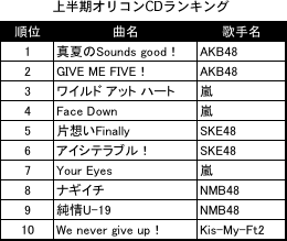 歌ネット上半期楽曲別ランキング (2012年発売楽曲のみ・歴代ランキング詳細)
