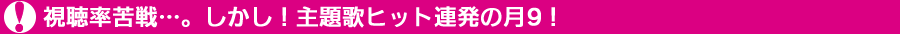歌ネットではこれまで、ドラマ『僕のいた時間』主題歌のRihwa「春風」や『ディア・シスター』主題歌のシェネル「Happiness」、“Nロス”に陥る若者続出の『Nのために』主題歌の家入レオ「Silly」などが歴代人気曲に認定。最近では、深田恭子の可愛さやディーン・フジオカのドS上司役が話題になった“ダメ恋”こと『ダメな私に恋してください』主題歌のaiko「もっと」も週間ランキングの連続首位を記録しております。そして、視聴率苦戦と言われているものの、2015年以降、主題歌のヒットを連発させているのが月9ドラマです!